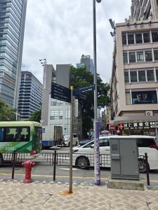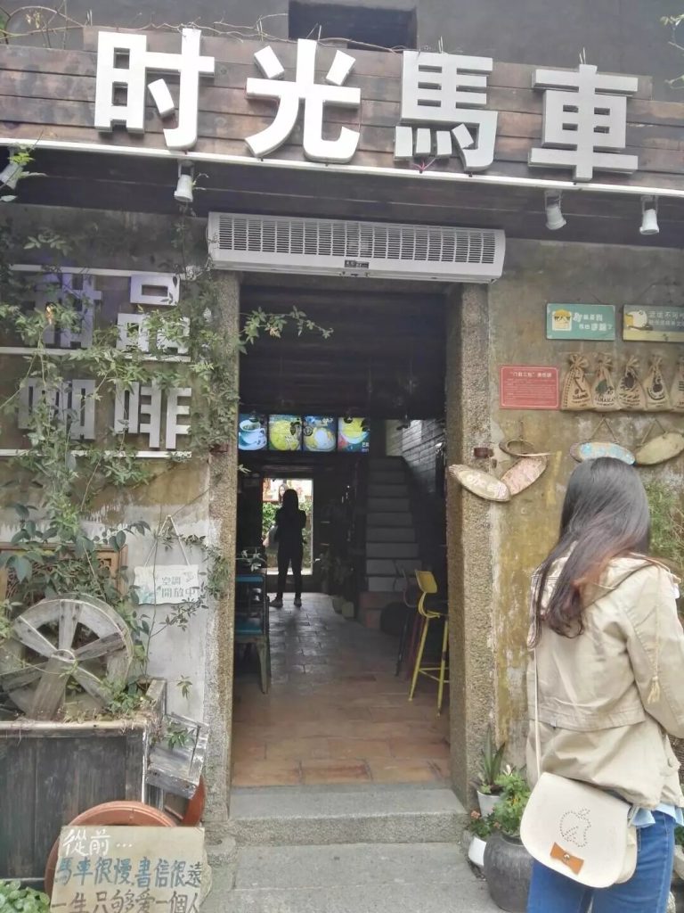 身上没带伞,只好到一家便利店前避雨。