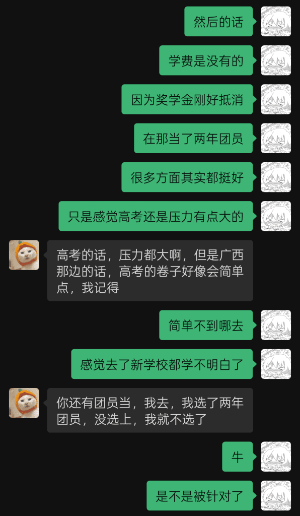 最终还是因为填报志愿没填好直接没书读,不过职校是可以录取的,但老妈又不给我去上,后面只好回去读。结果回去以后,移动把我卡给停了,说我跨省有电诈嫌疑,我无话可说,我爸见状又把我卡给注销了。然后换了个手机,微信直接登不上,也找不回,与昔日老友断联这块。