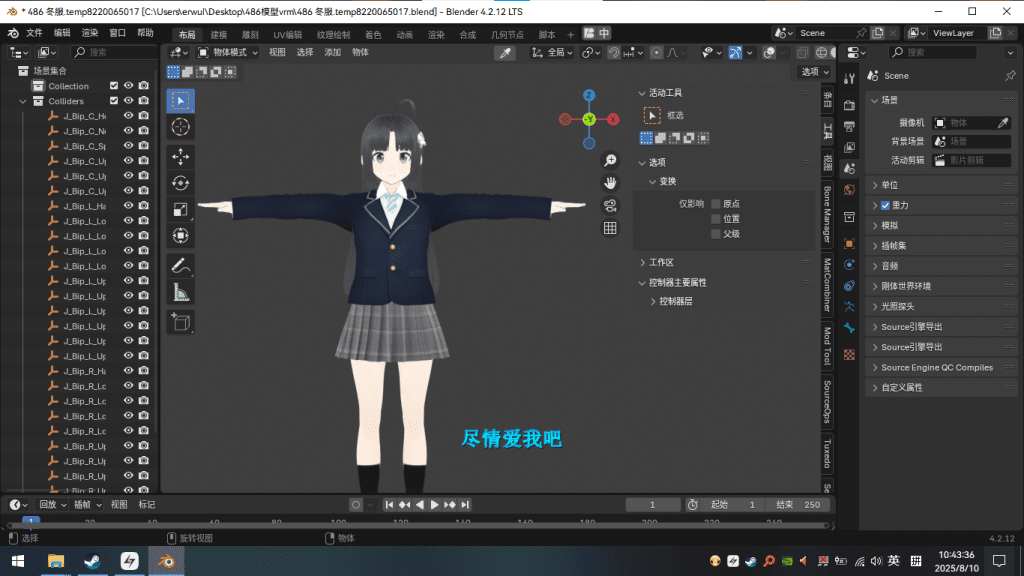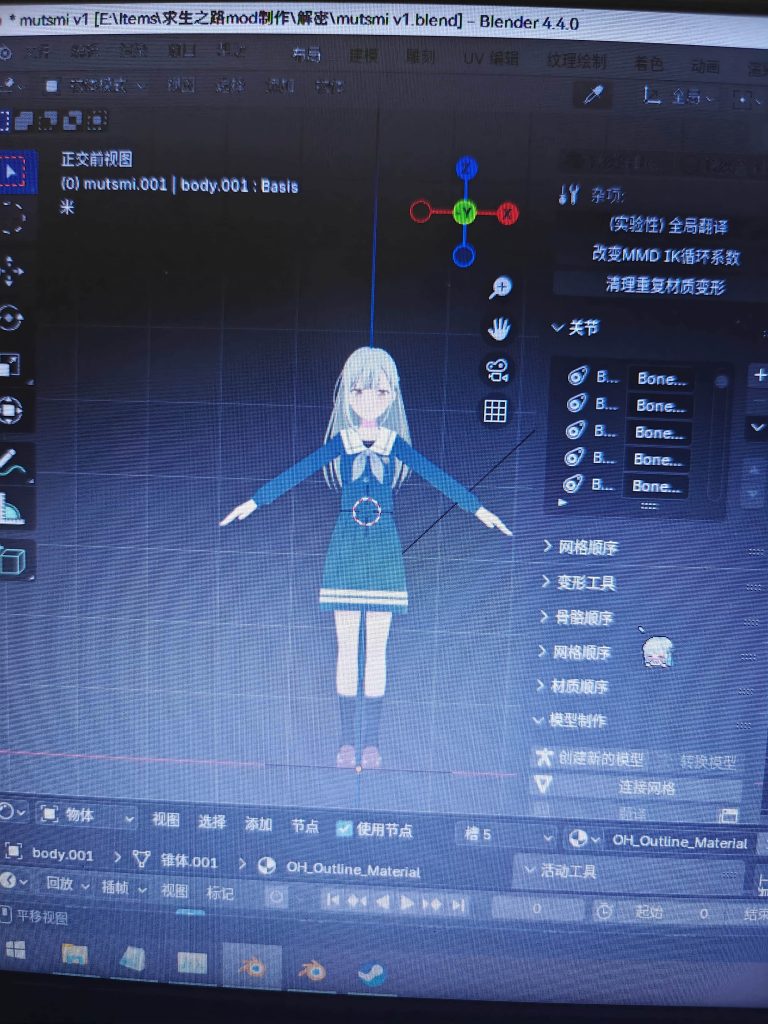于是,我一气之下打开草稿本,记录了目前创意工坊存在的角色,以及缺少的角色,开始规划到时候要从哪开始制作。规划好一切,从5月份开始就跟着教程学建模,然后是模型转MOD,这些都摸索了很长时间。上来做的第一个模型还是地狱级难度,没有裙子骨骼,模型也没精简过,既有点卡,还有些bug。